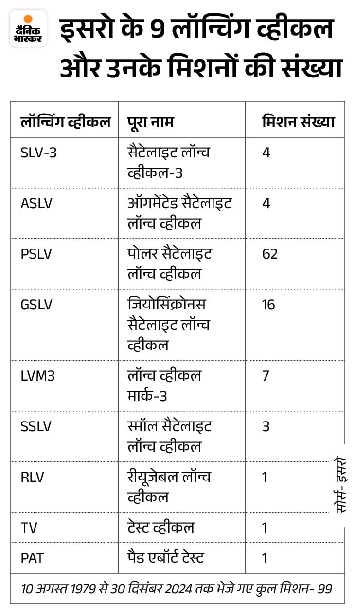 भारतीय अंतरिक्ष अनुसंधान संगठन (ISRO) की स्थापना 15 अगस्त 1969 को की गई थी। इसका पहला मिशन SLV-3 E1/ रोहिणी टेक्नोलॉजी पेलोड के जरिए 10 अगस्त 1979 को लॉन्च किया गया था। तब से 30 दिसंबर 2024 तक SHAR लॉन्चिंग व्हीकल के जरिए 99 मिशन लॉन्च कर चुका है।