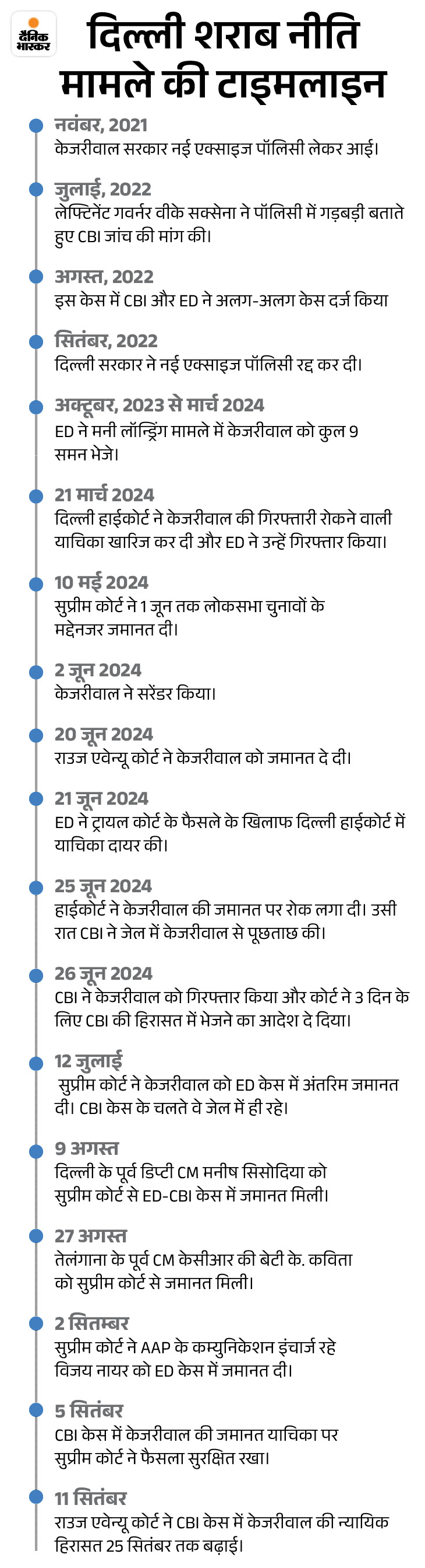 केजरीवाल को शराब नीति से जुड़े ED केस में सुप्रीम कोर्ट से ही 12 जुलाई को जमानत मिल चुकी है। इस केस में आम आदमी पार्टी (AAP) नेता संजय सिंह, दिल्ली के डिप्टी सीएम मनीष सिसोदिया और भारत राष्ट्र समिति (BRS) लीडर के कविता को जमानत दी जा चुकी है।