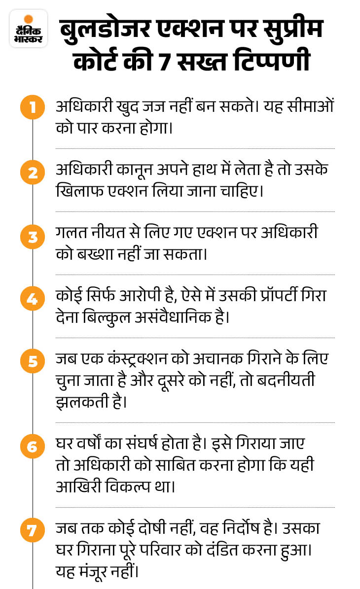 Bulldozer Action Verdict Update; BJP Muslims | UP MP Rajasthan | बुलडोजर एक्शन पर SC बोला- अफसर जज नहीं बन सकते: वे तय न करें कि दोषी कौन; ताकत के गलत इस्तेमाल की इजाजत नहीं