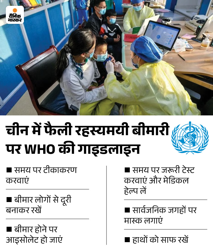 जवाब: चीन की हेल्थ अथॉरिटी का कहना है कि ये सामान्य निमोनिया बीमारी ही है। नई बीमारी या दूसरे बैक्टीरिया या वायरस का संक्रमण नहीं है। हालांकि 15 नवंबर 2023 को प्रो-मेड नाम के एक सर्विलांस प्लेटफॉर्म ने चीन में निमोनिया को लेकर दुनियाभर में अलर्ट जारी किया है।