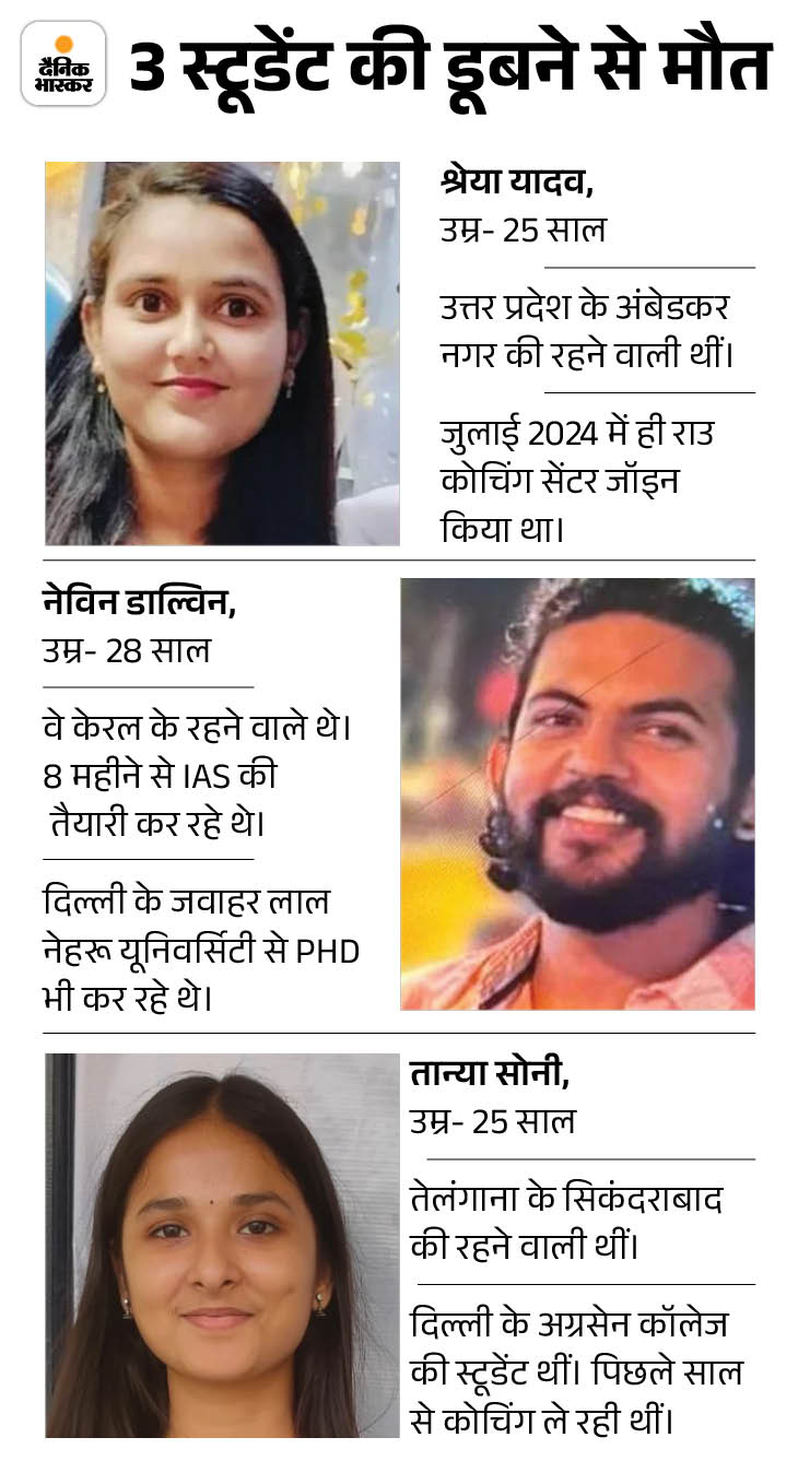 27 जुलाई को हुए हादसे बेसमेंट में फंसने से तीन छात्रों की मौत हो गई थी।