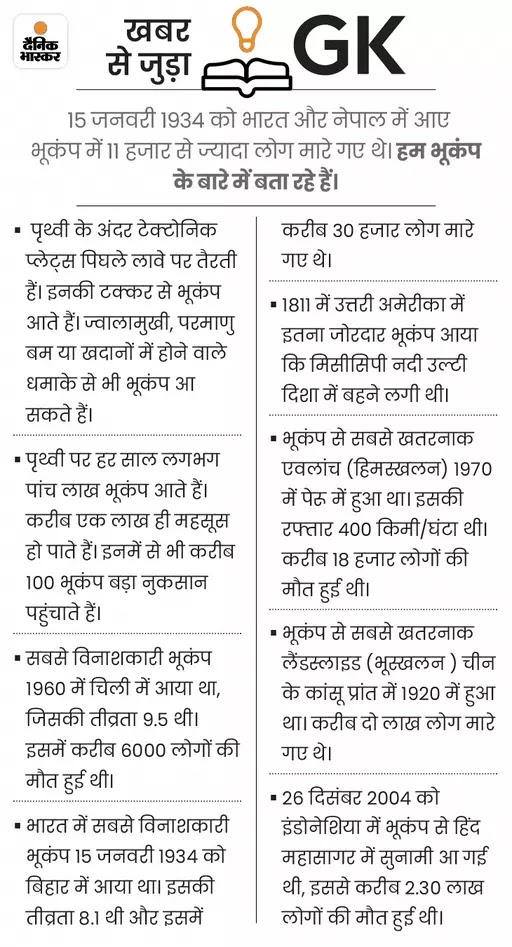 इसके पहले 11 जनवरी को अफगानिस्तान के हिंदुकुश क्षेत्र में दोपहर 2:20 बजे तेज भूकंप आया था। इसकी वजह से पाकिस्तान के इस्लामाबाद, रावलपिंडी और भारत में जम्मू-कश्मीर, जयपुर से दिल्ली-NCR तक झटके महसूस किए गए थे।