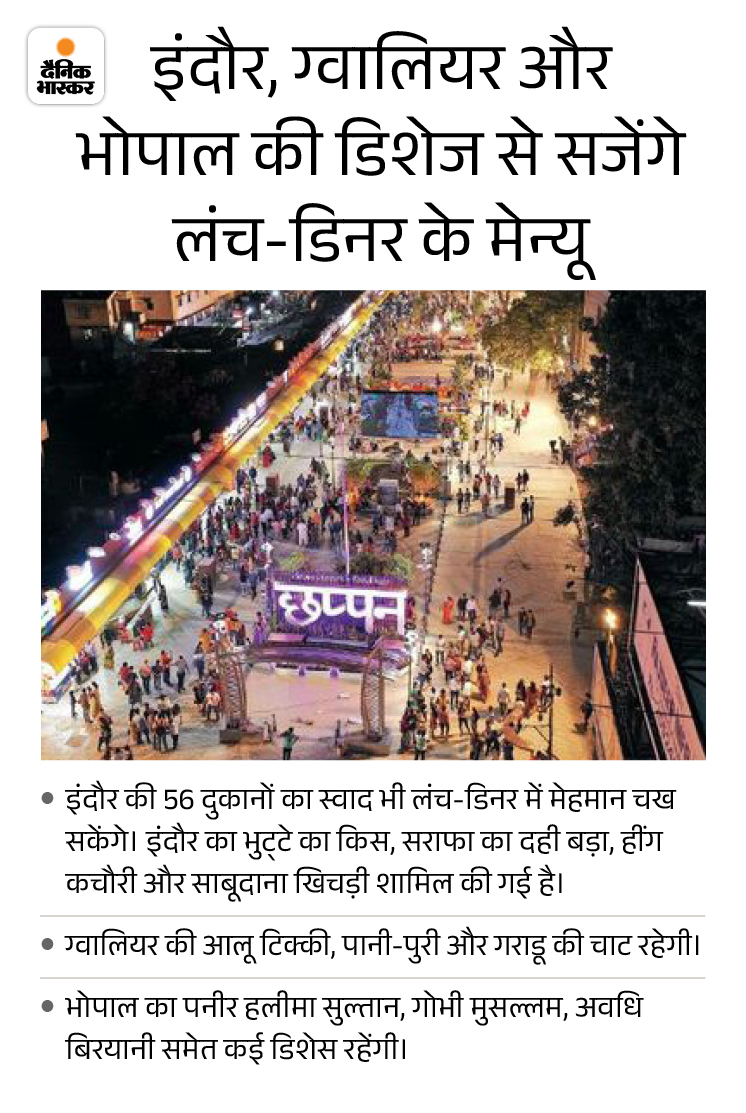 एमपी के साथ अन्य स्टेट की भी ब्रांडिंग मेहमानों के लिए मध्यप्रदेश के अलावा बिहार, राजस्थान, पंजाब और साउथ इंडियन स्टेट्स की डिशेज की ब्रांडिंग भी की जाएगी। पंजाबी तड़का में अमृतसर का पनीर, दाल ढाबा, मैथी मटर मलाई शामिल हैं।