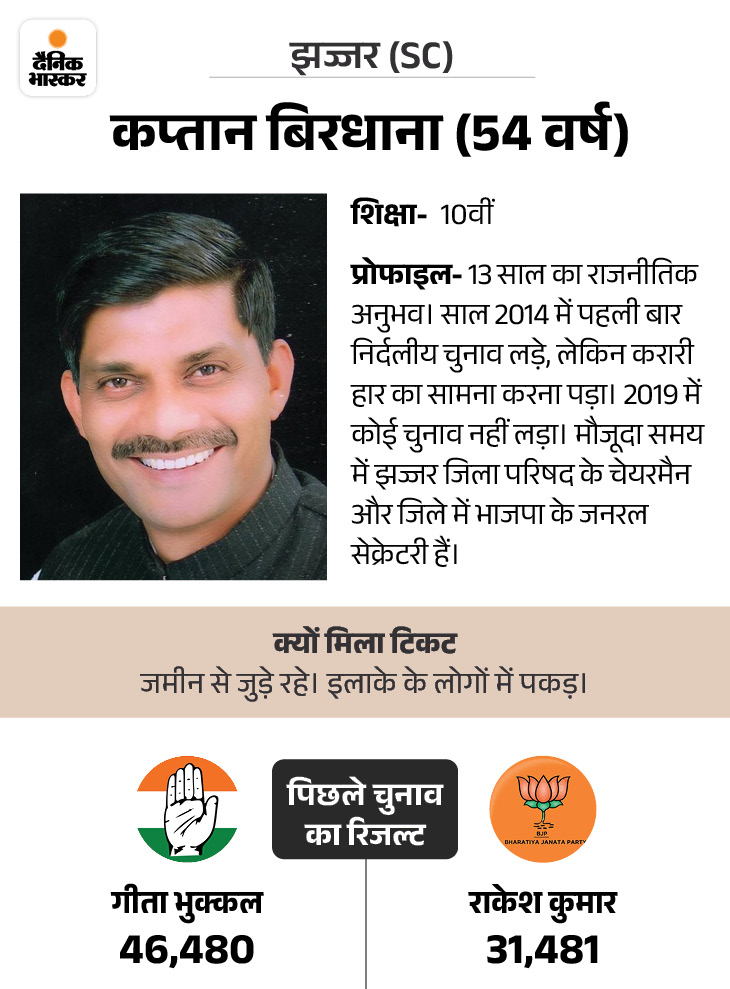 67 सीटों में 16 टिकटें OBC और 13-13 जाट और SC उम्मीदवारों को मिली है। SC के लिए 17 सीटें रिजर्व हैं। रिजर्व सीटों के अलावा किसी अन्य सीट पर SC के उम्मीदवारों को मौका नहीं मिला है। पहली लिस्ट के 67 कैंडिडेट्स में केवल 8 महिलाएं हैं। इस लिस्ट में 10 दलबदलुओं को टिकट दी है।