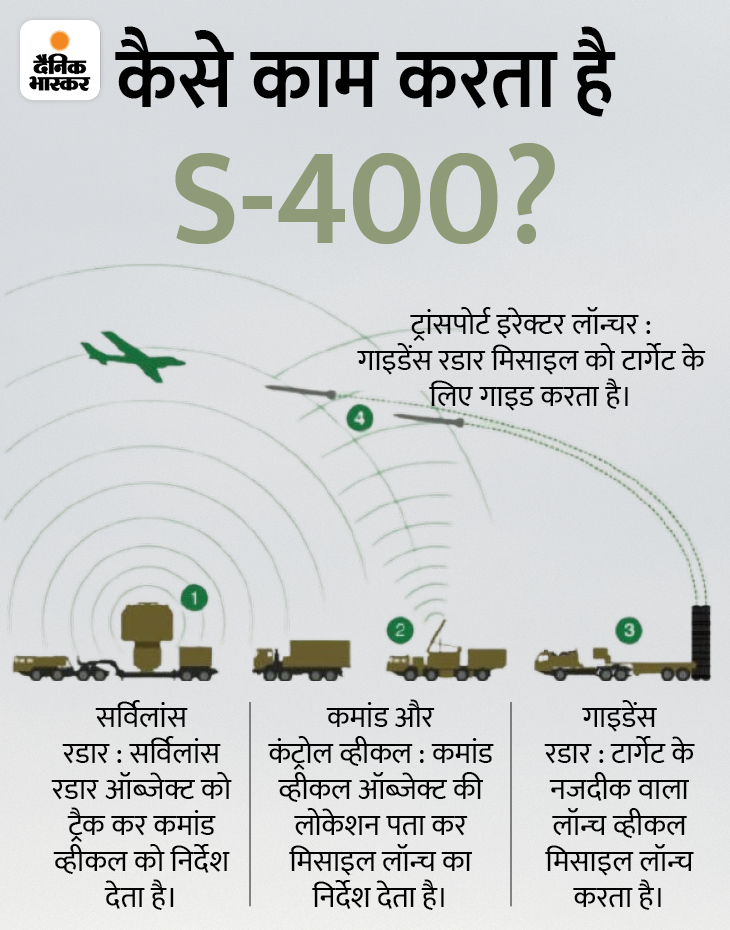 भारत और रूस के बीच 2018 में S-400 के पांच स्क्वाड्रन के लिए 35 हजार करोड़ की डील फाइनल हुई थी। इसमें से 3 स्क्वाड्रन चीन और पाकिस्तान बॉर्डर पर तैनात हैं। 2 का आना बाकी है।