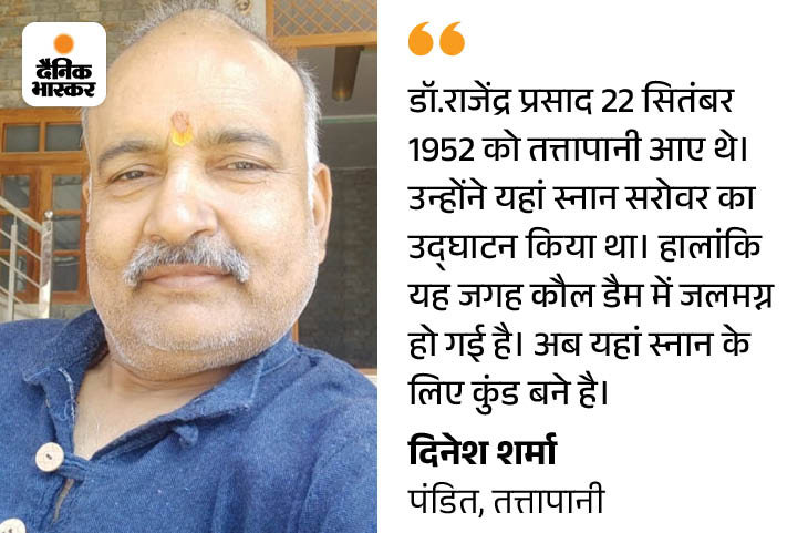 तत्तापानी के पंडित दिनेश शर्मा ने बताया कि पूर्व राष्ट्रपति 22 सितंबर 1952 को तत्तापानी आए थे। उस दौरान उन्होंने यहां स्नान सरोवर का उद्घाटन किया था। इसकी उद्घाटन पटि्टका को समाज सेवी प्रेम रैना ने आज भी अपने होटल में संजो कर रखा है।