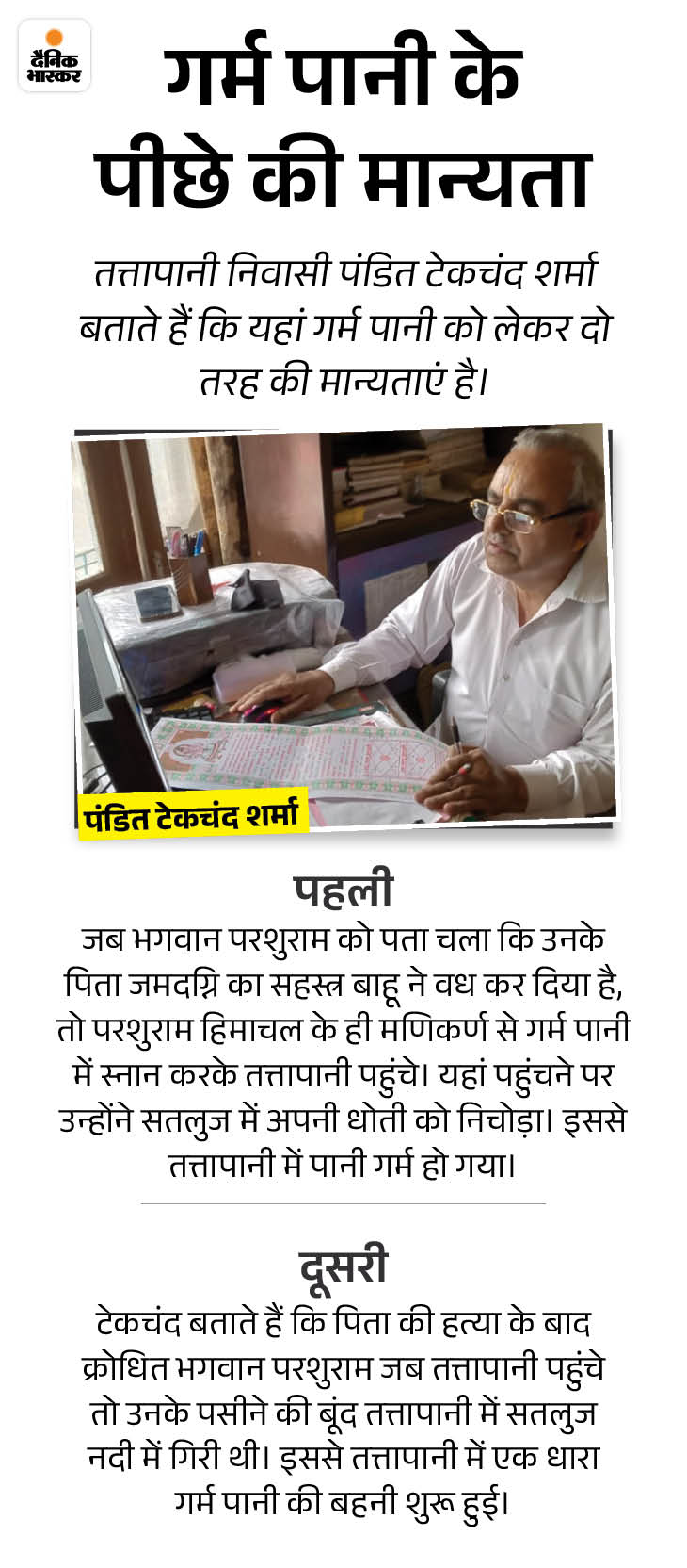 आज मकर संक्रांति है। हिमाचल प्रदेश की राजधानी शिमला से 56 किमी दूर तत्तापानी में हजारों लोग आस्था की डुबकी लगाने के लिए पहुंचेंगे। यहां की खासियत यह है कि यहां गर्म पानी निकलता है। ऐसी मान्यता है कि इसमें स्नान से सारे चर्म रोग दूर होते हैं।