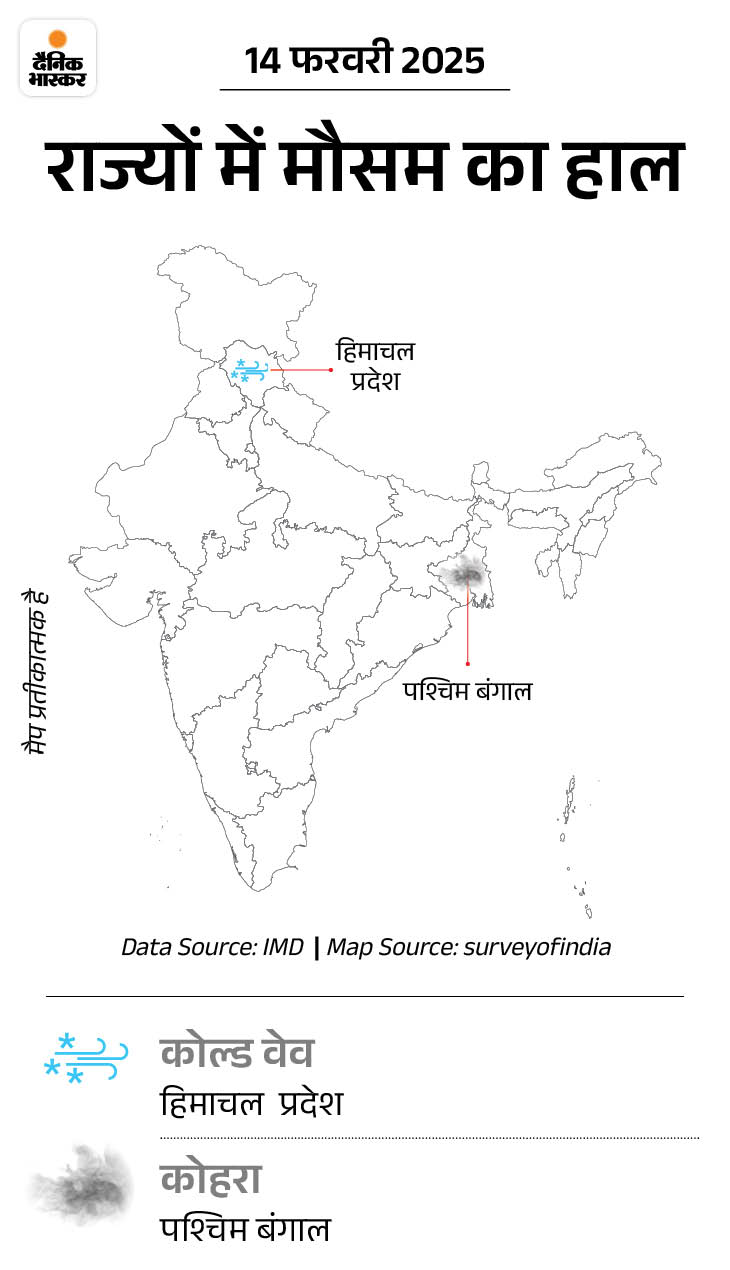 Temperature in MP at night is 7°, heat increased in Rajasthan | MP में रात में टेंपरेचर 7°, राजस्थान में गर्मी बढ़ी: हिमाचल के 3 जिलों में शीतलहर चलेगी, जम्मू-कश्मीर के गुलमर्ग में तापमान -7 डिग्री पहुंचा