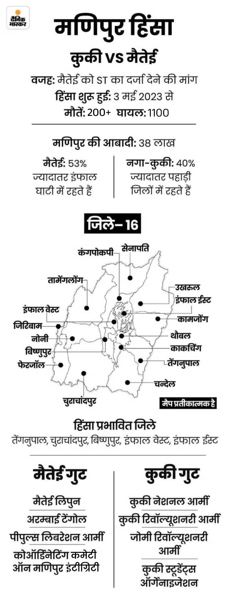 मणिपुर फायरिंग में मारे गए 13 लोग मैतेई थे: कुकी बहुल इलाके में दूसरे गुट ने गोलीबारी की थी, ज्यादातर की उम्र 20 से 25 साल