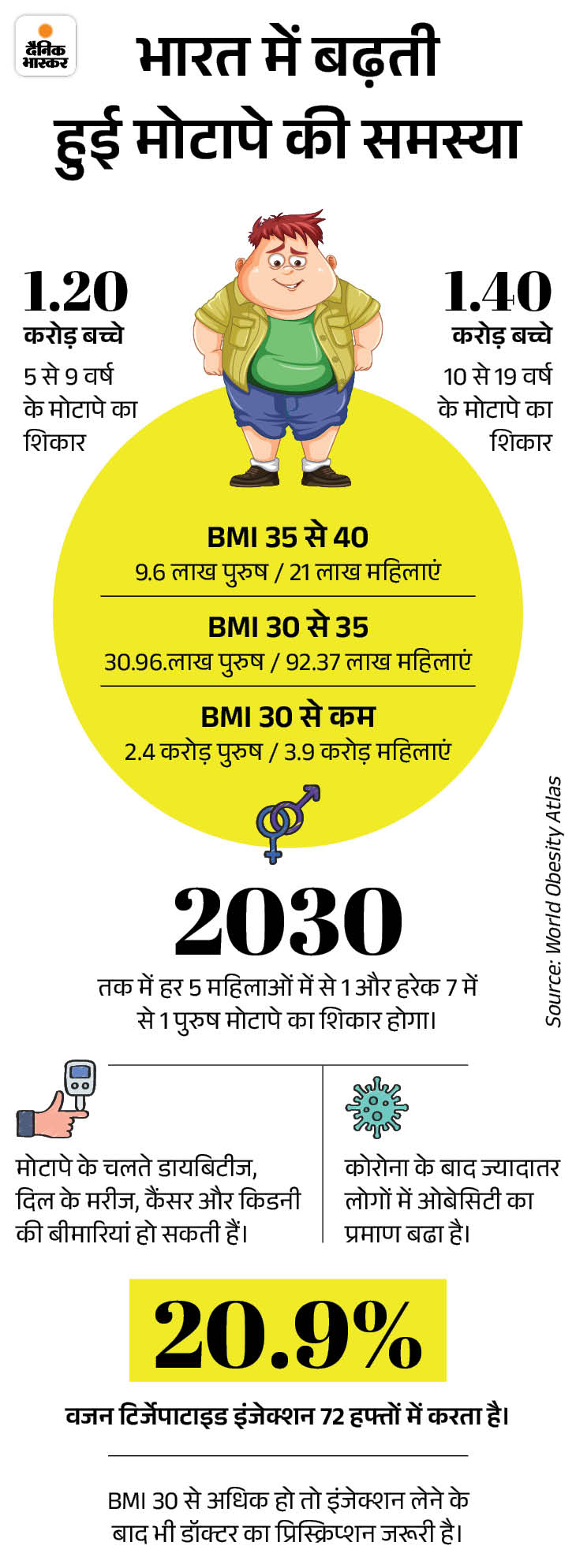 इस इंजेक्शन में ऐसा क्या है जो मोटे आदमी को पतला बना सकता है? वजन कैसे कम कर सकते हैं? यह इंजेक्शन कौन ले सकता है और कौन नहीं? इंजेक्शन कितने समय तक लेना है? अगर यह भारत आएगा तो इसकी कीमत क्या होगी? इंजेक्शन लेने से क्या दुष्प्रभाव होते हैं? इन सभी सवालों के लिए हमने अहमदाबाद के ओबेसिटी सर्जन डॉ. अपूर्व व्यास से बातचीत की…